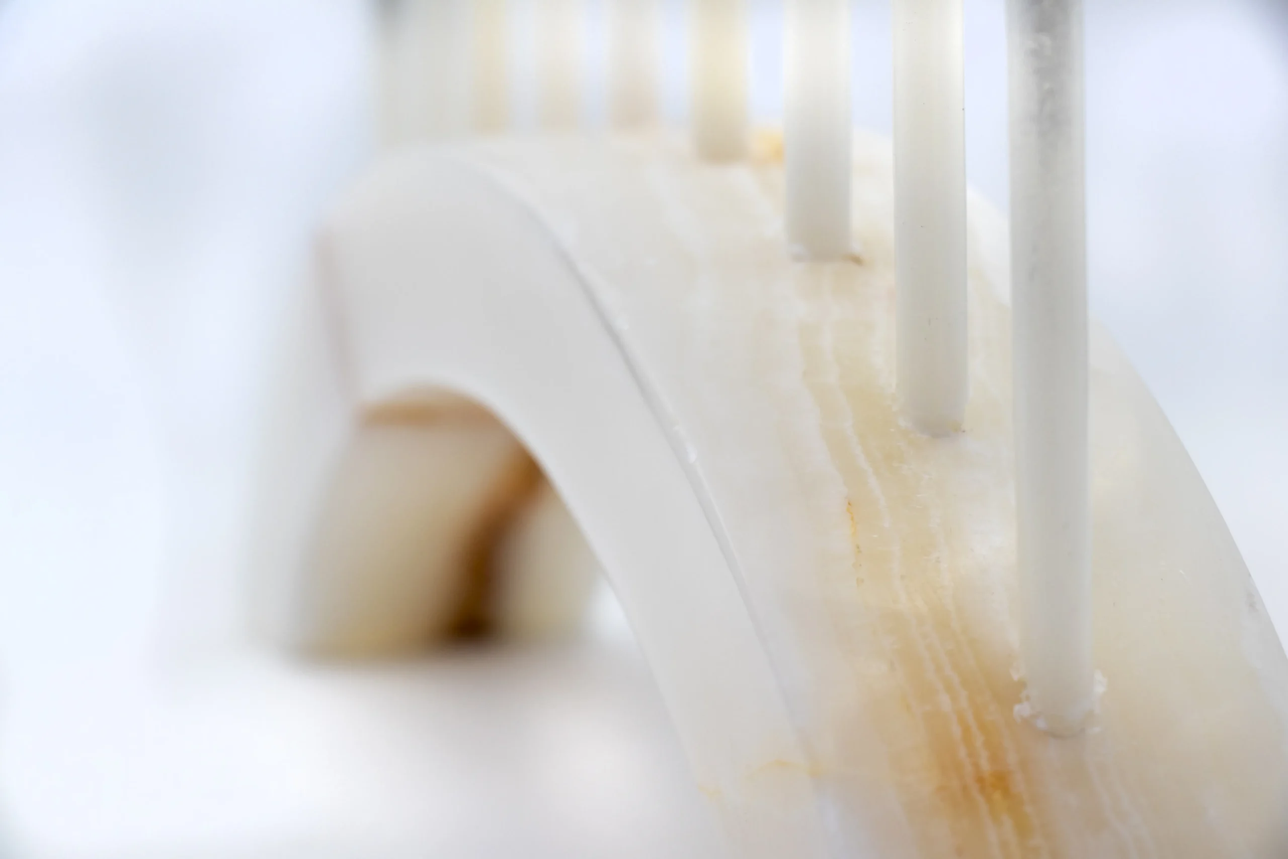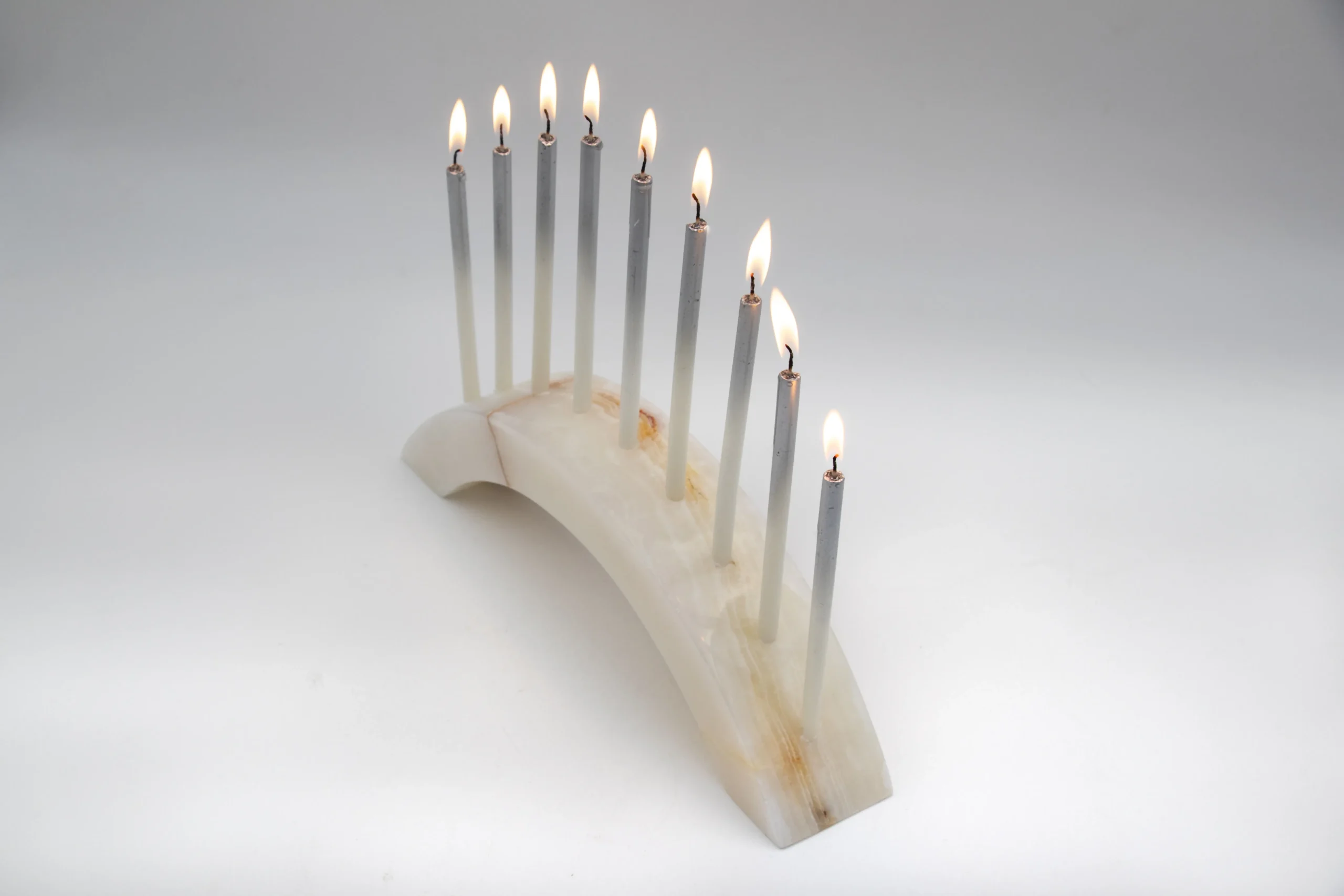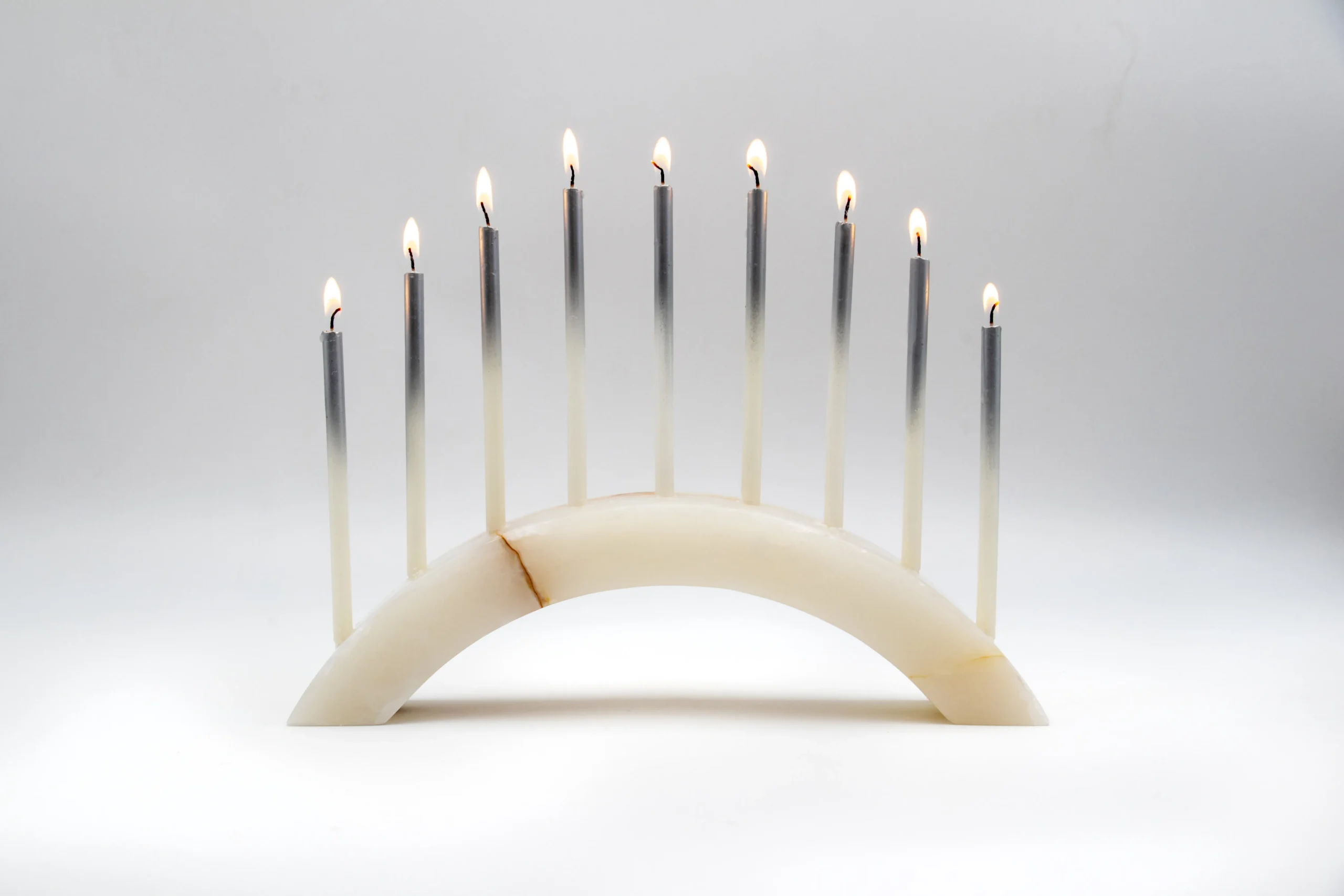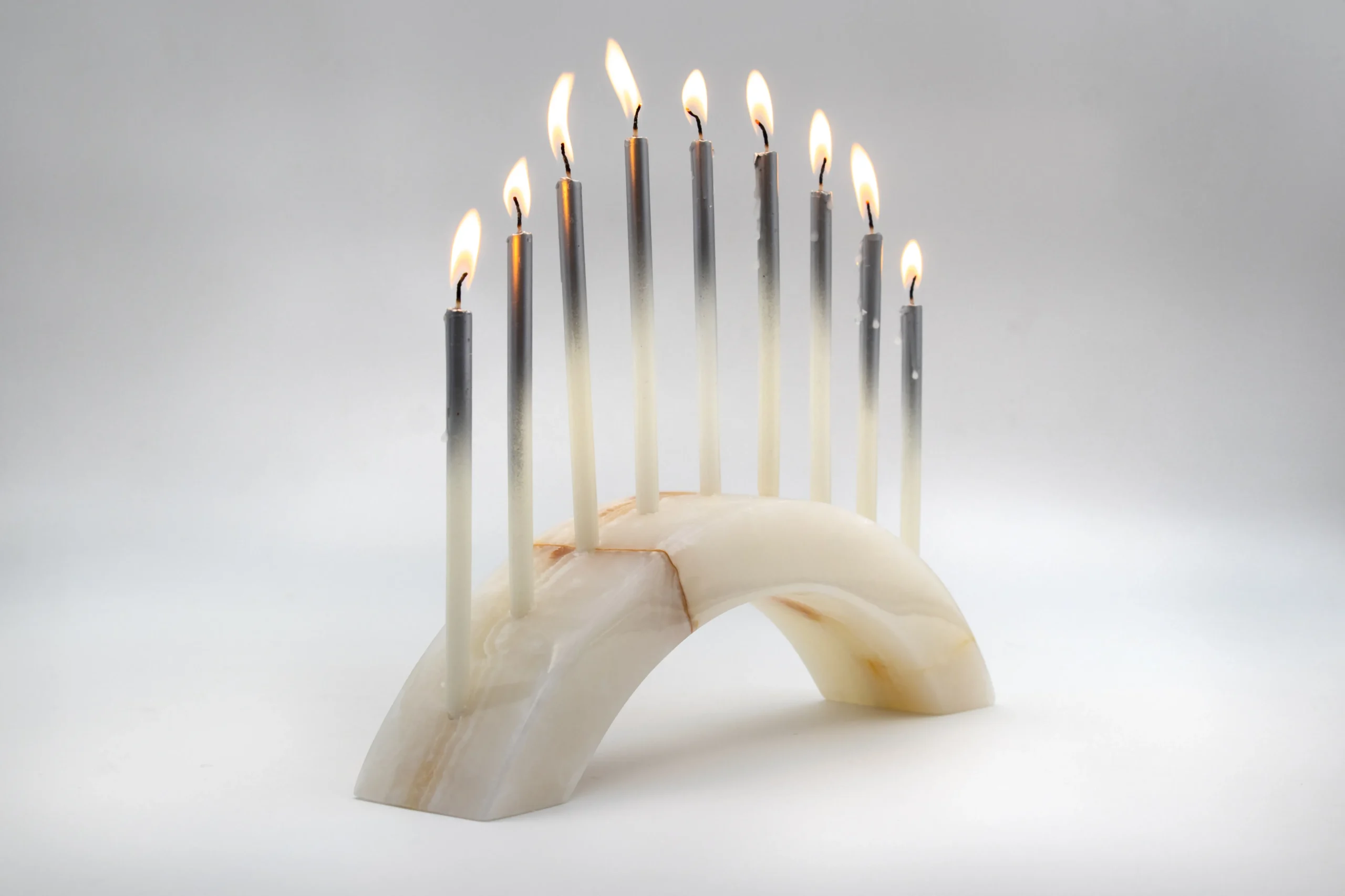 Elegant arched candle holder with multiple slots for slender candles, creating a radiant wave of light.
