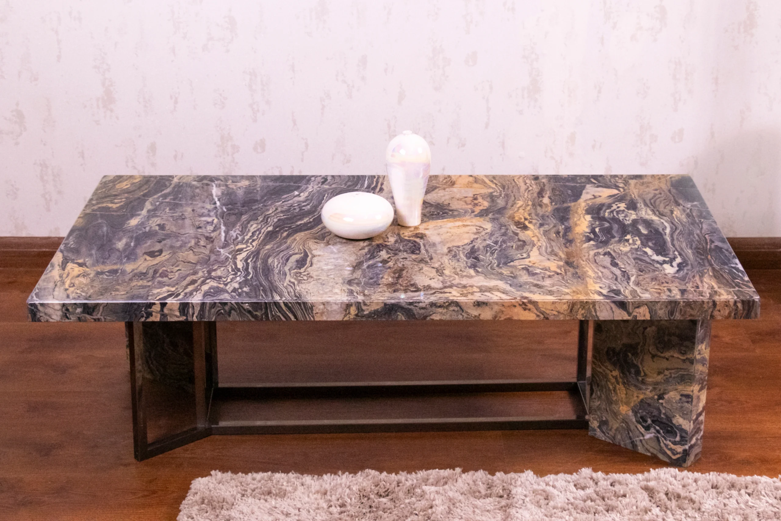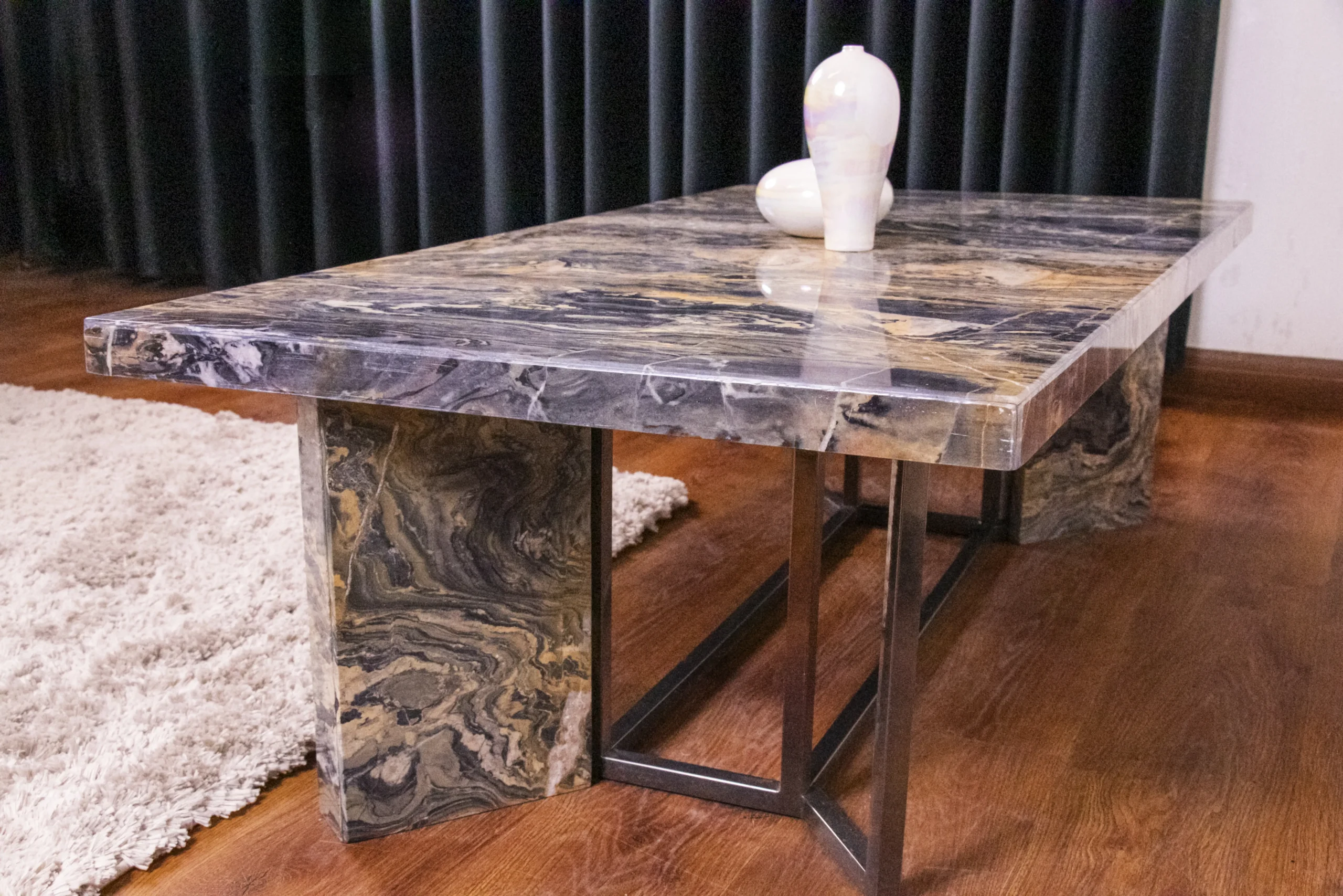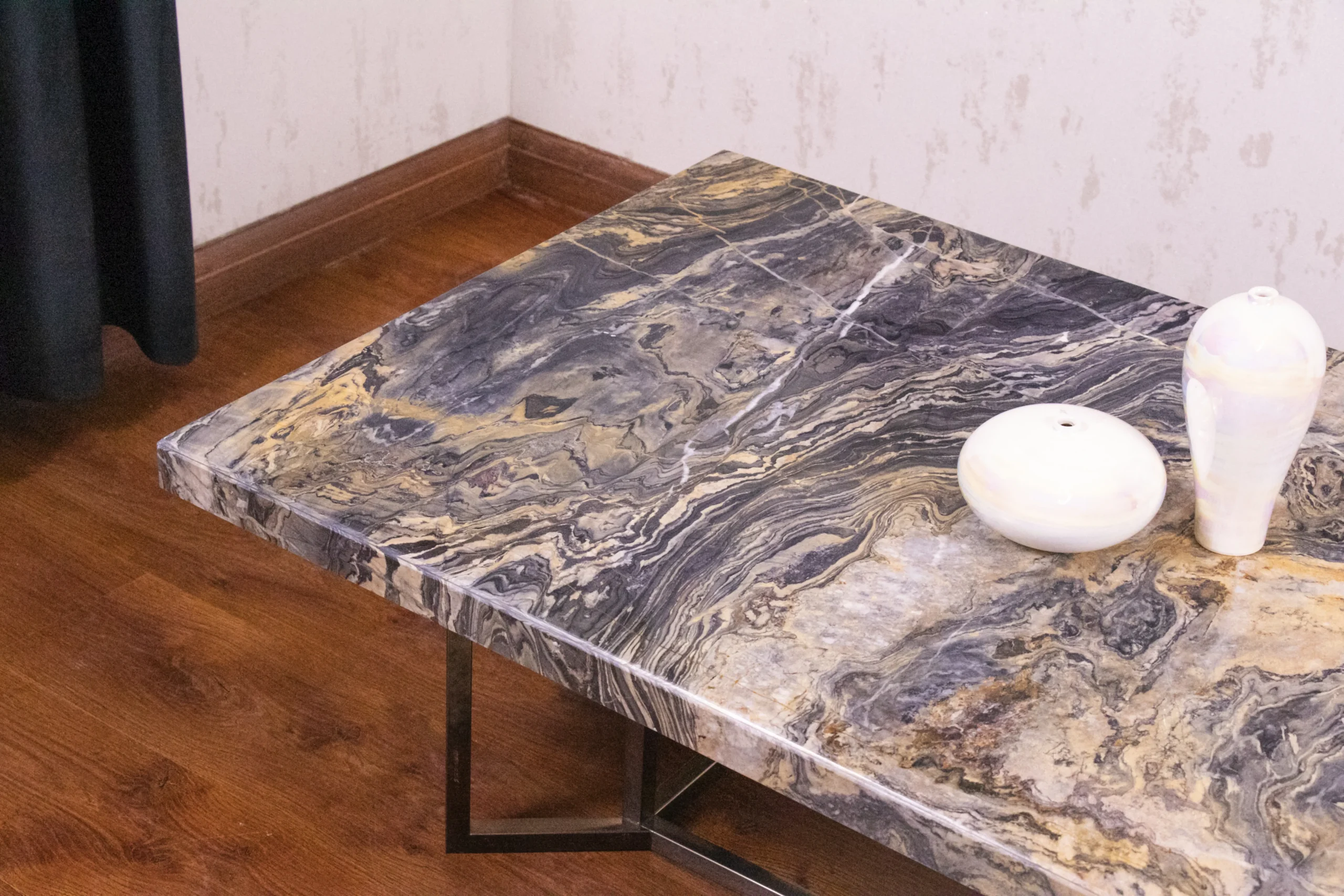 Modern marble table with strong steel frame.