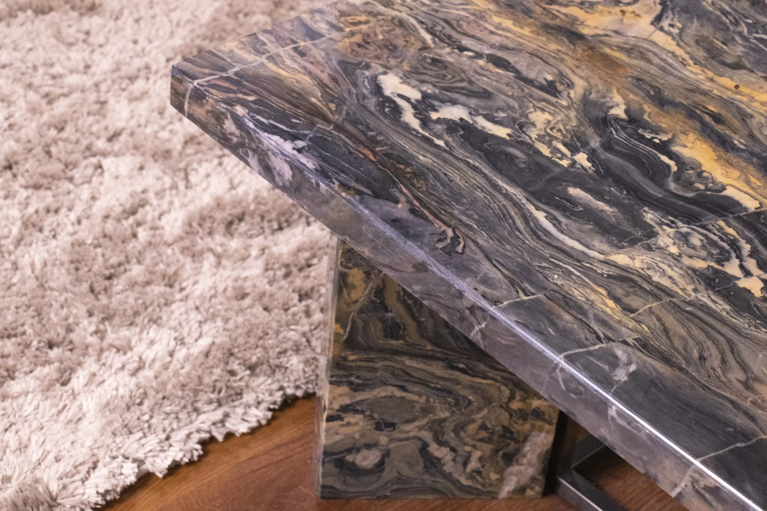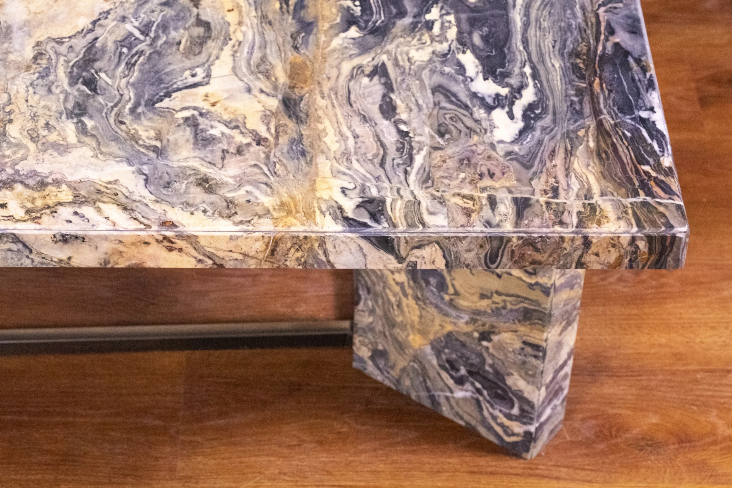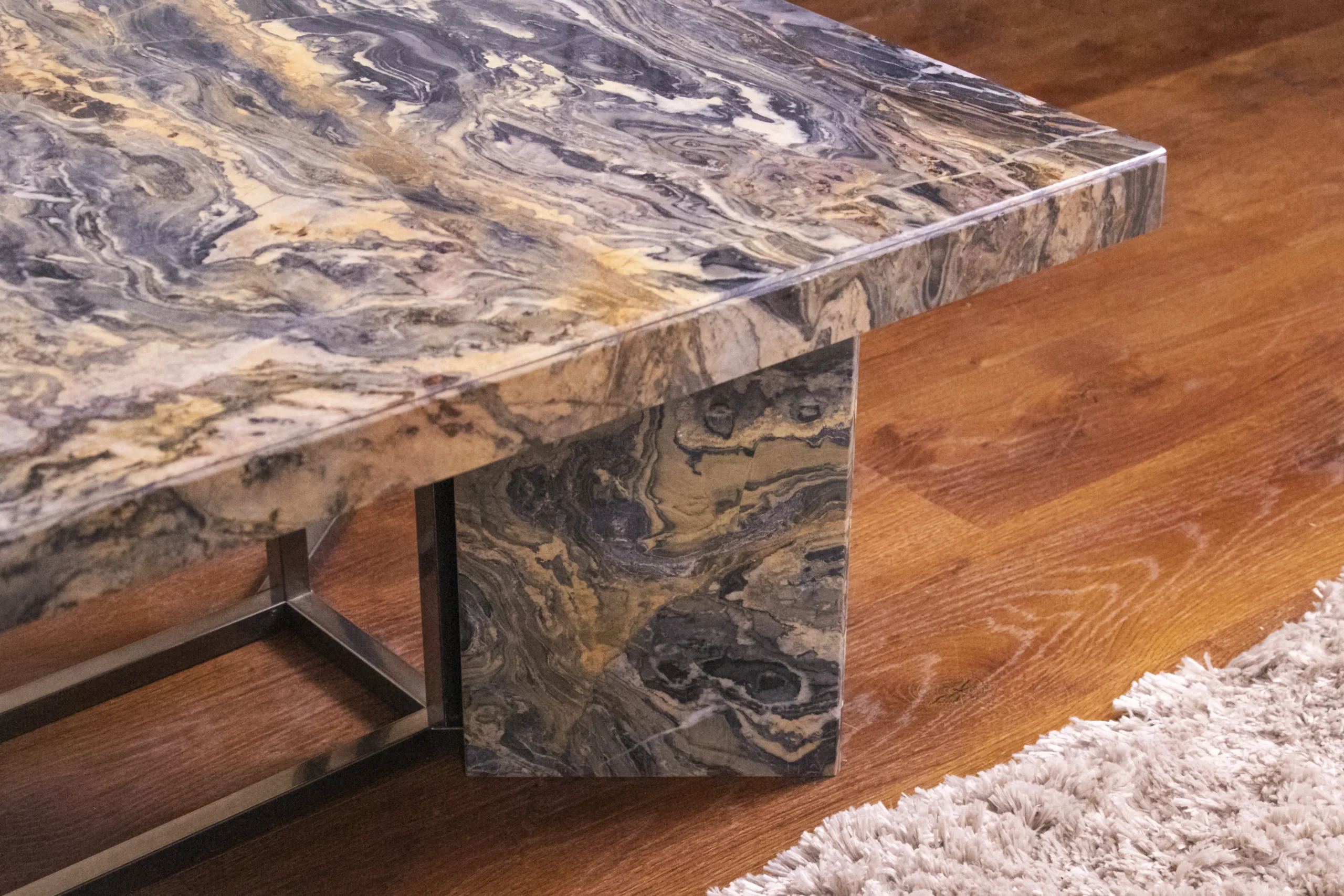 Modern marble table with strong steel frame.