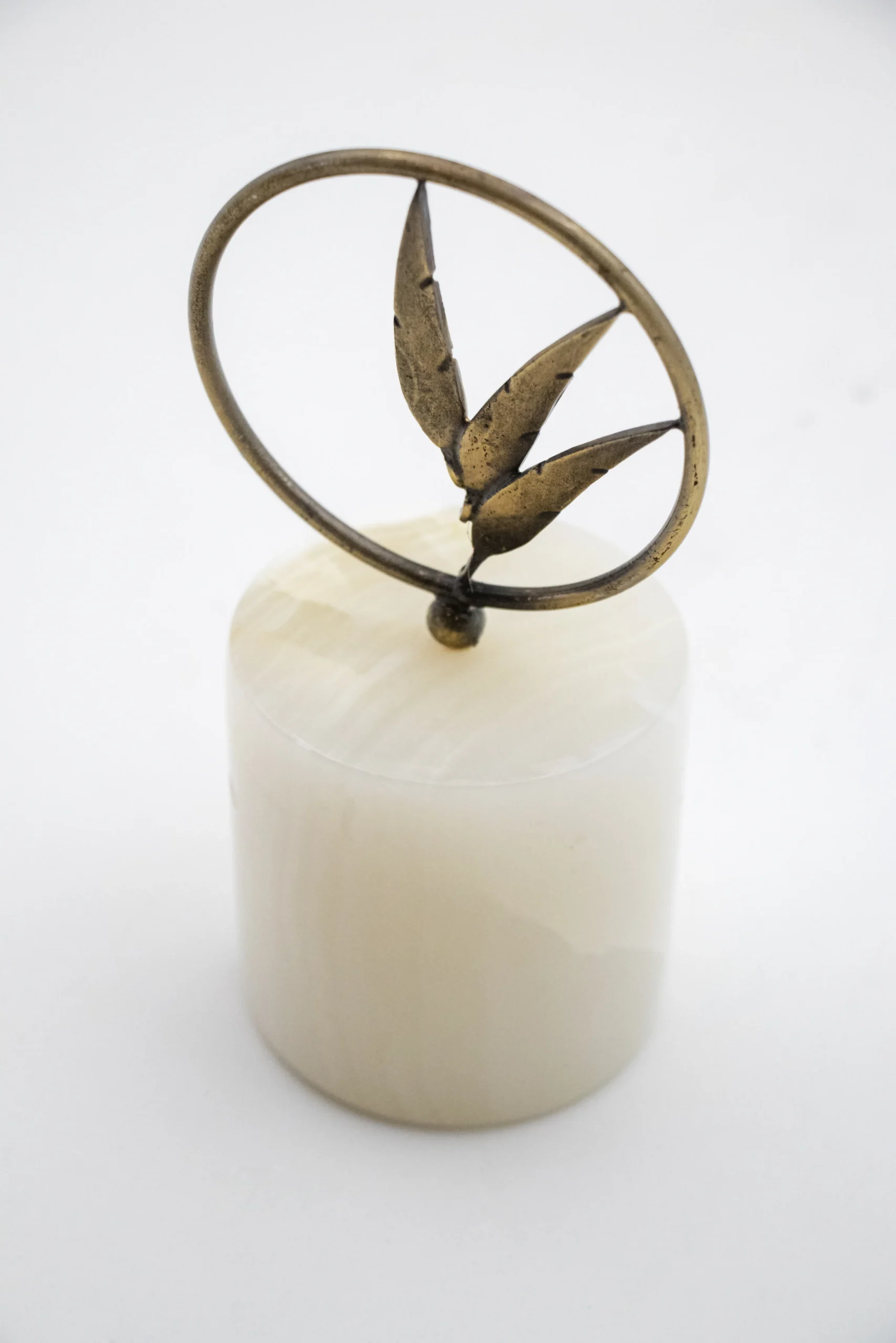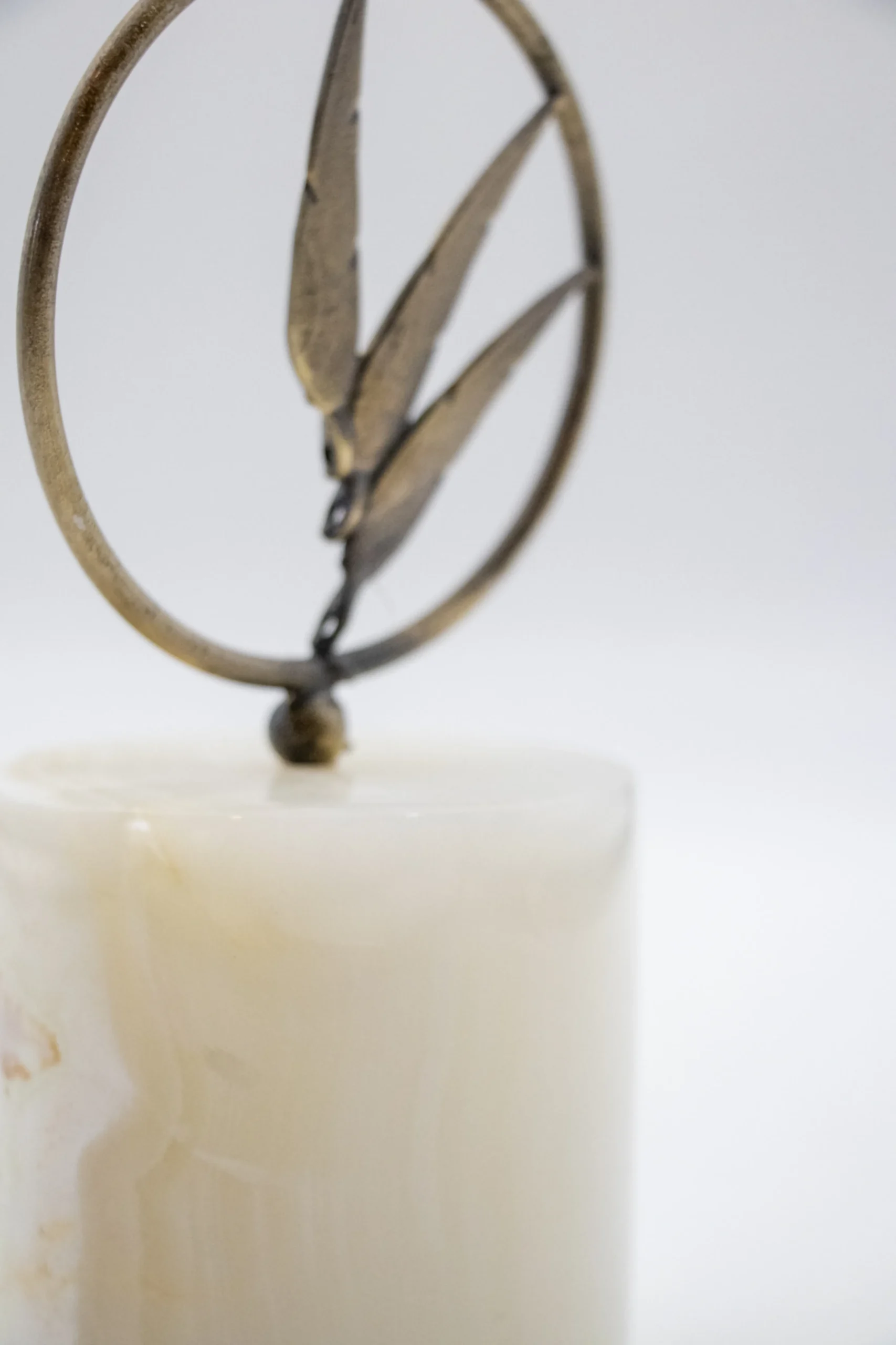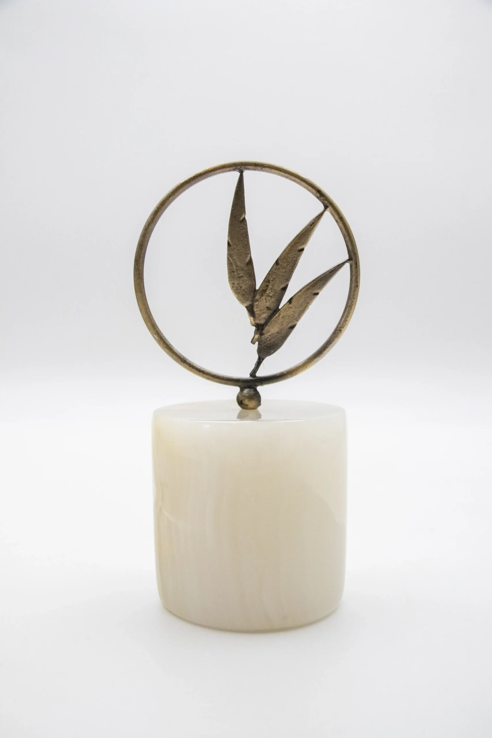 Bamboo Circle Sculpture – Stone Base-White onyx