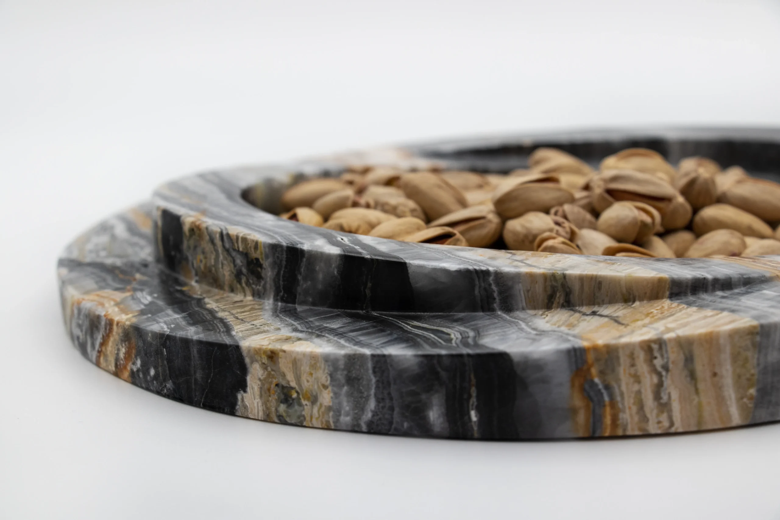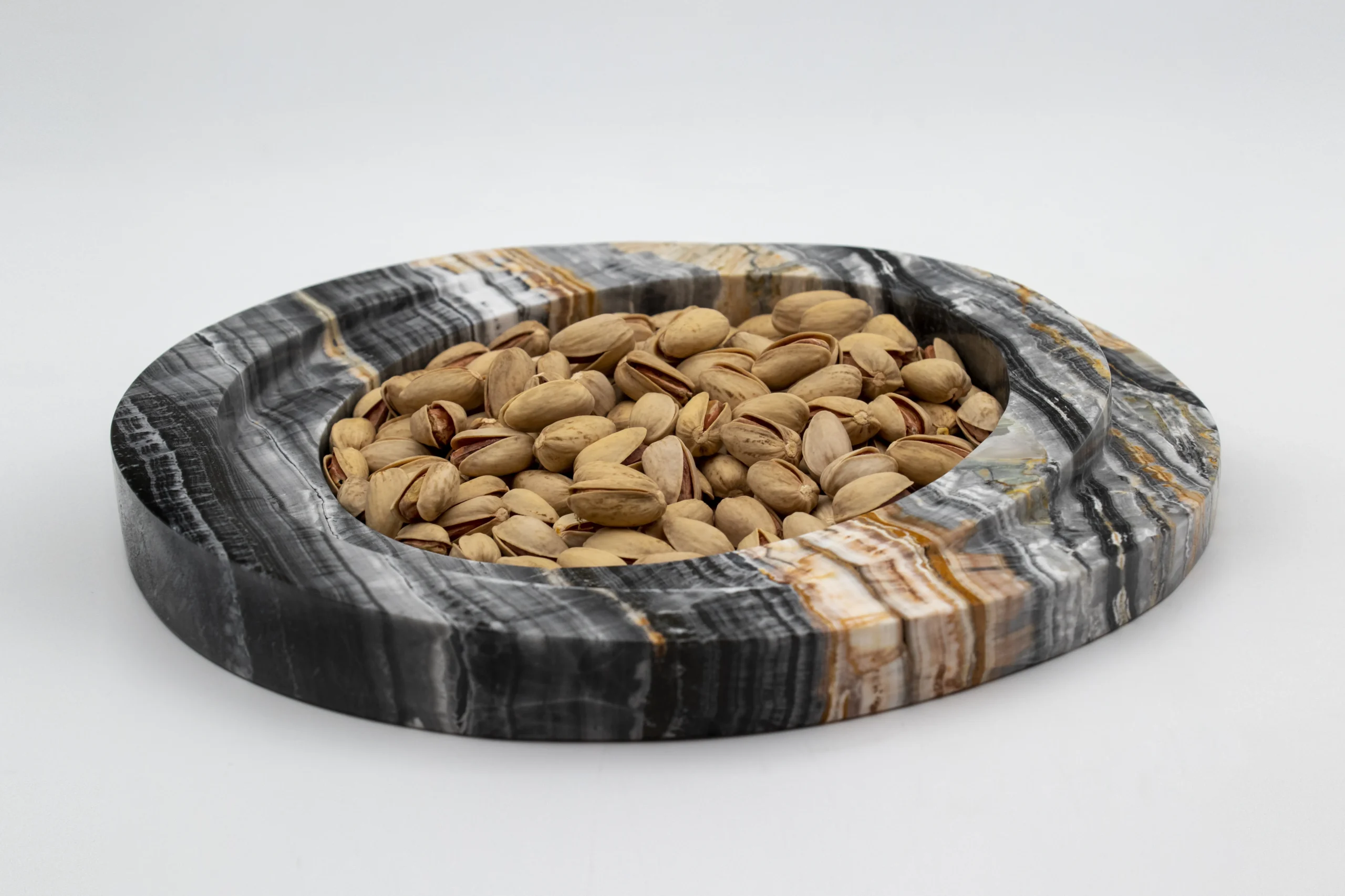 Circular bowl with stepped edge for elegant serving.