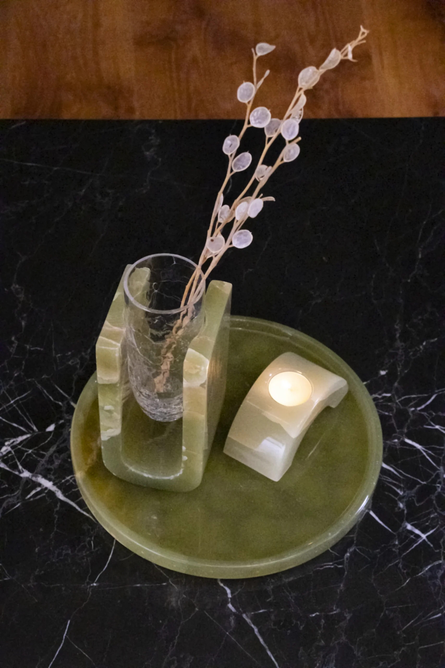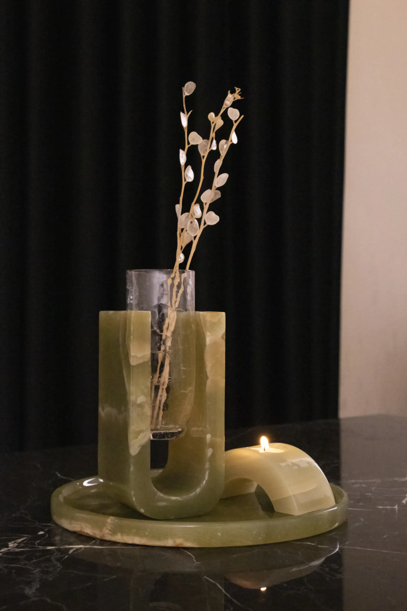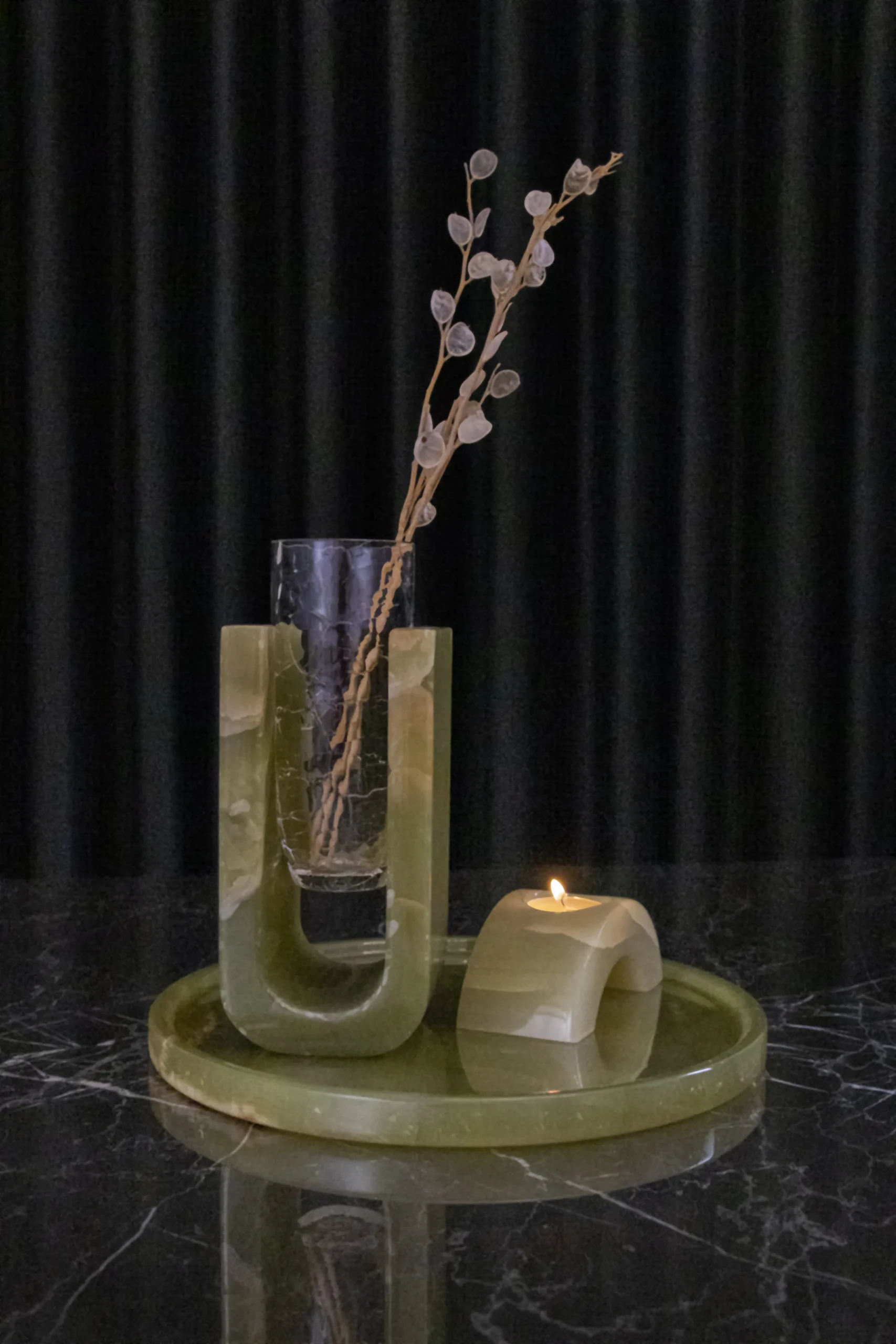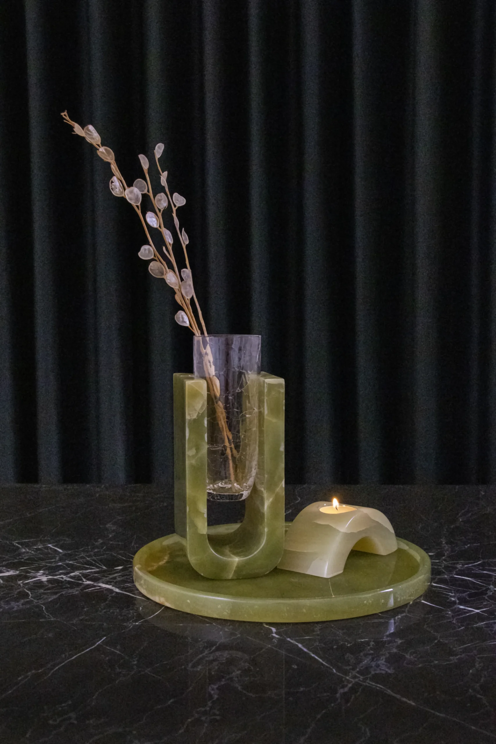 Harmonia Duo – Vase & Candle Set-Green Onyx