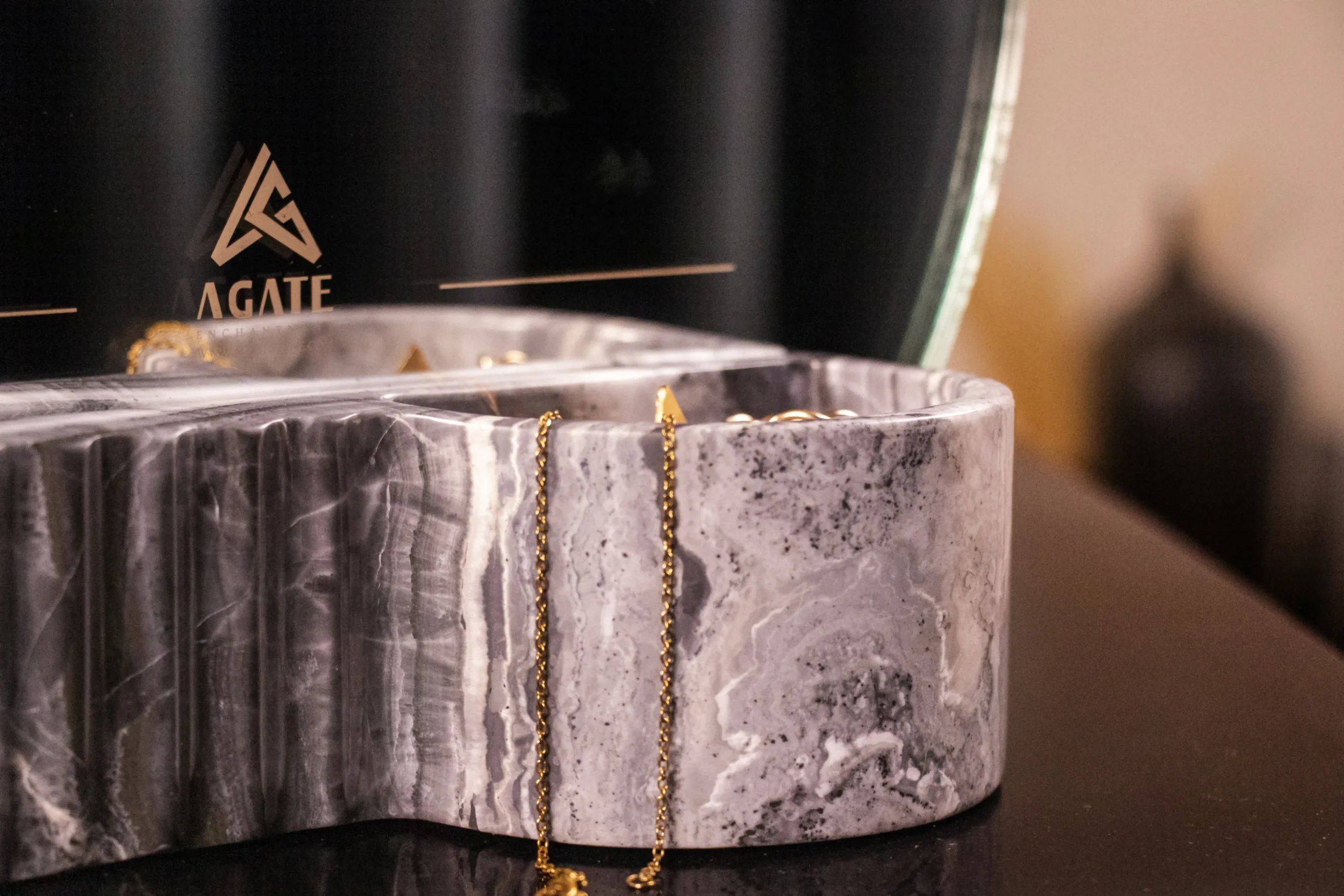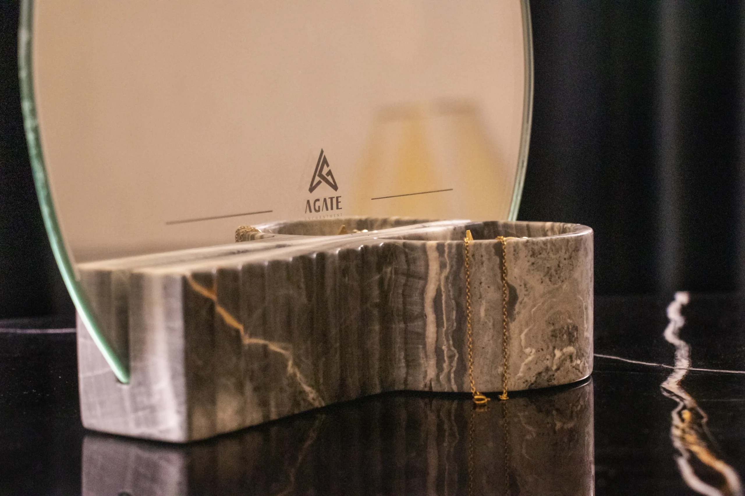 Helios Mirror & Jewelry Holder-Blue onyx