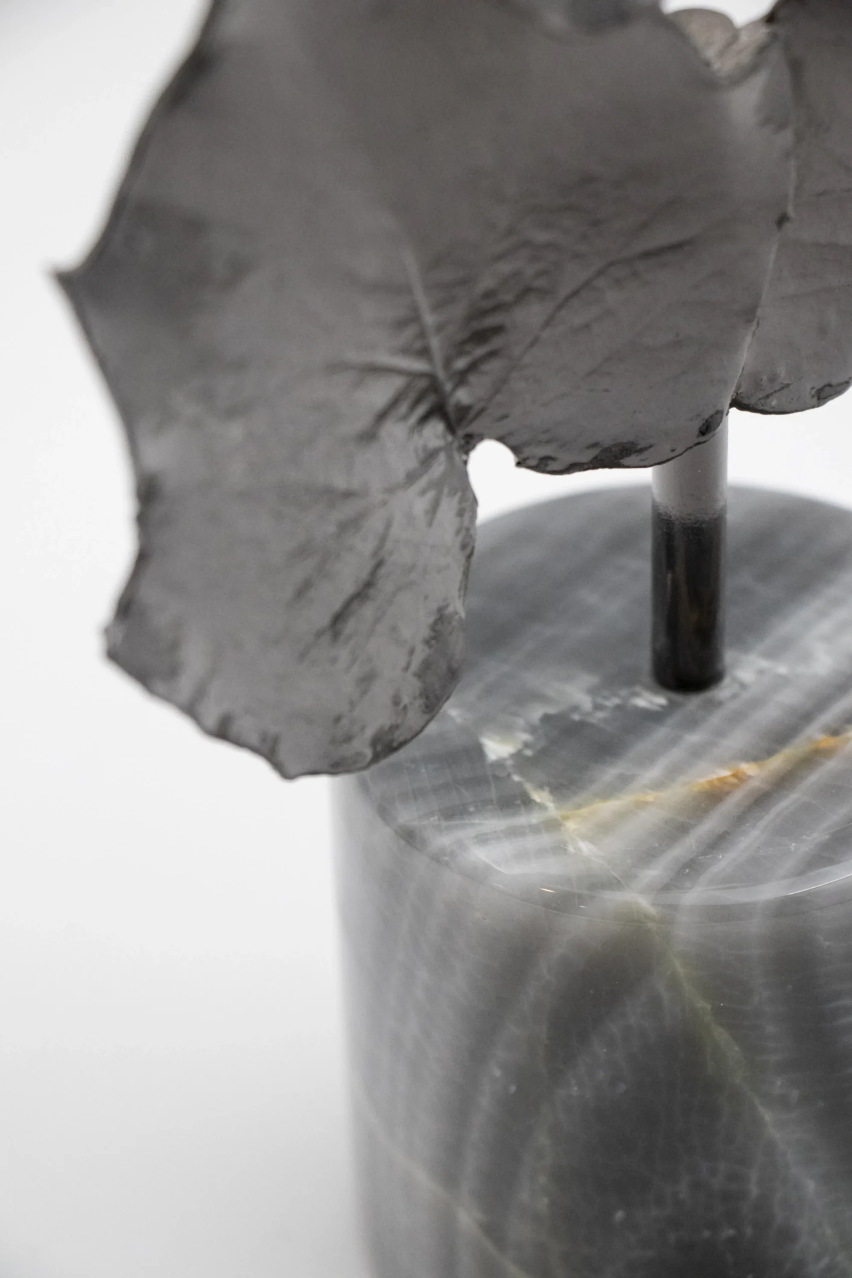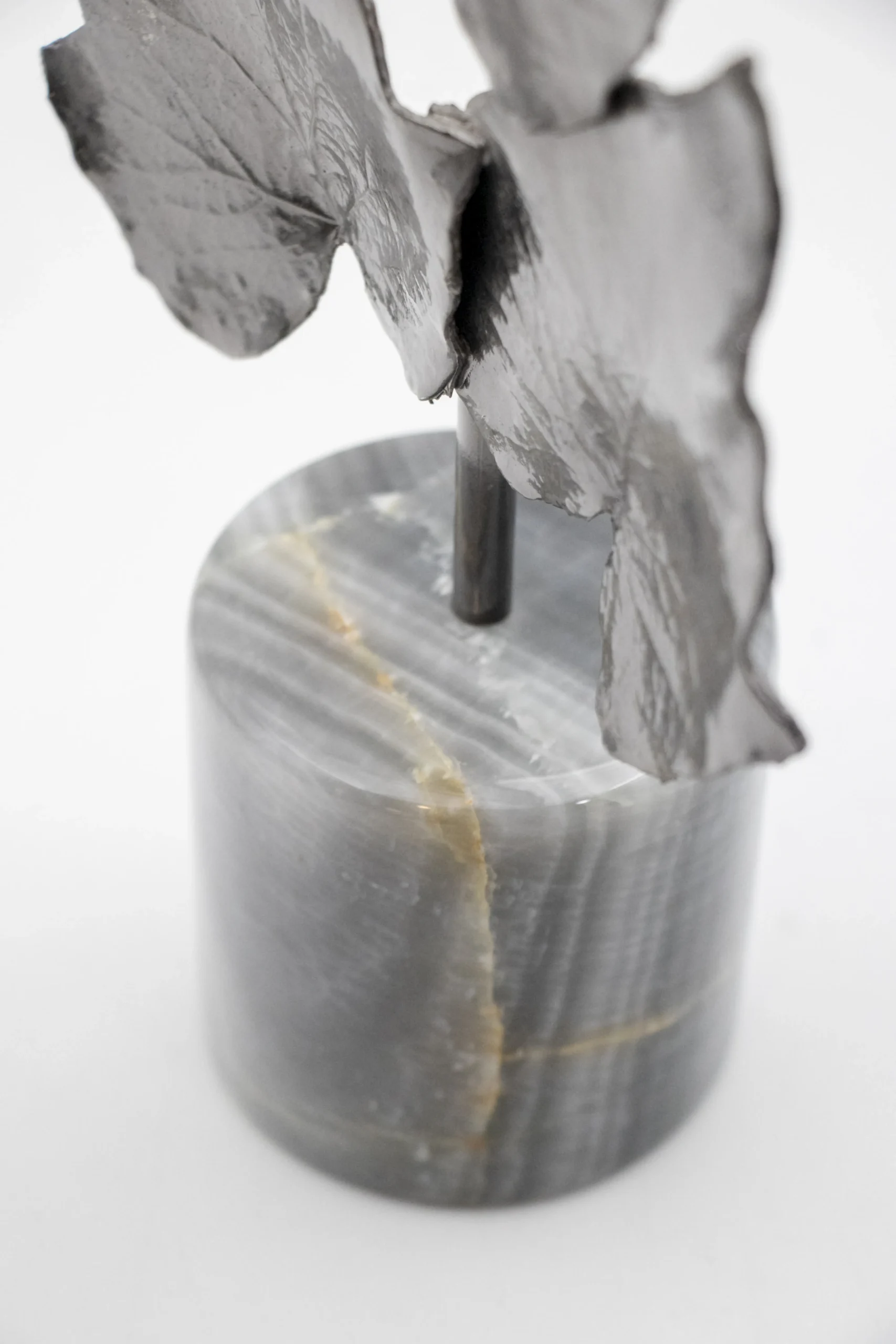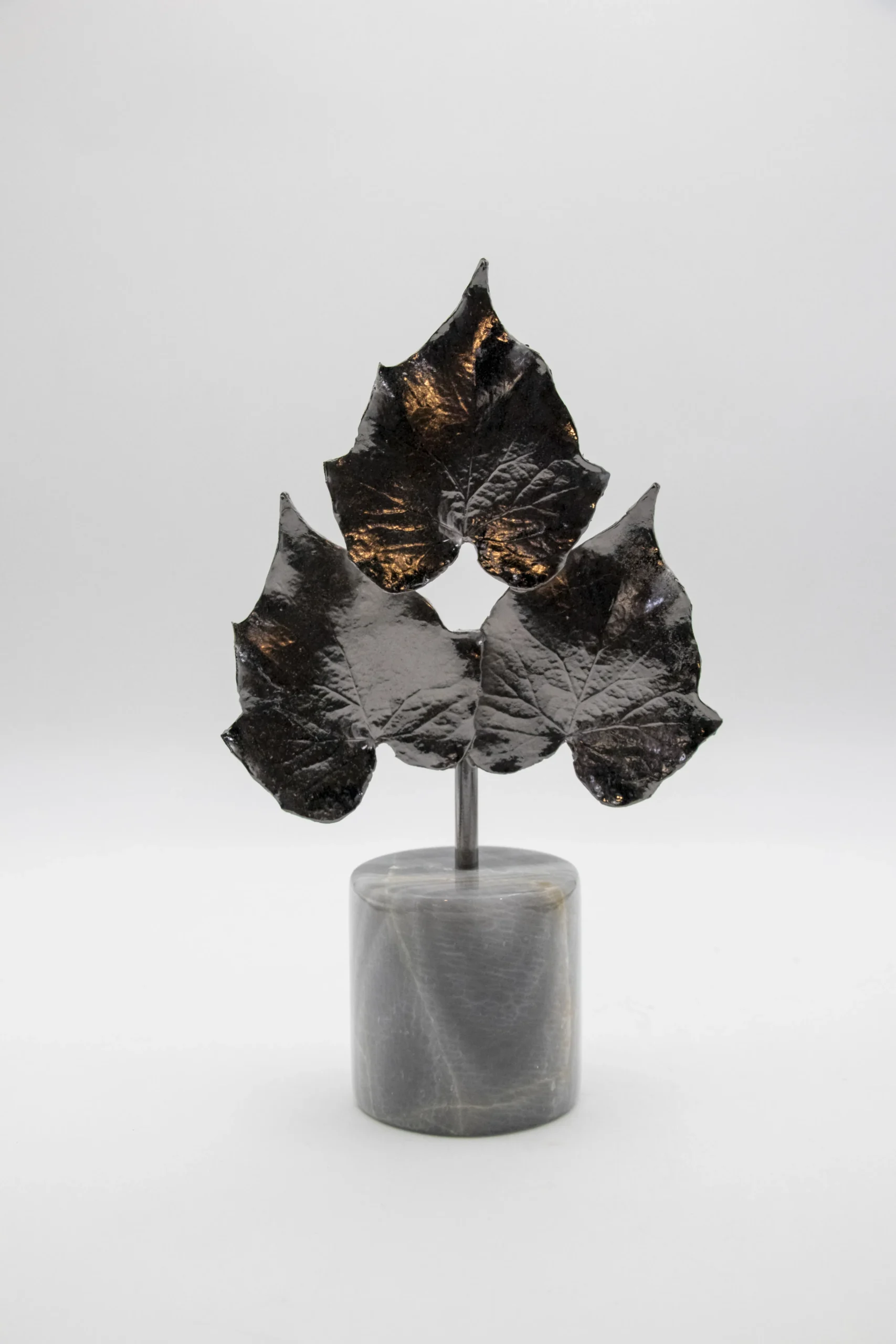 Decorative trio of ivy-inspired leaves on stone base.
