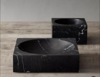 Two-piece ashtray set with cubic outer walls and deep bowl.
